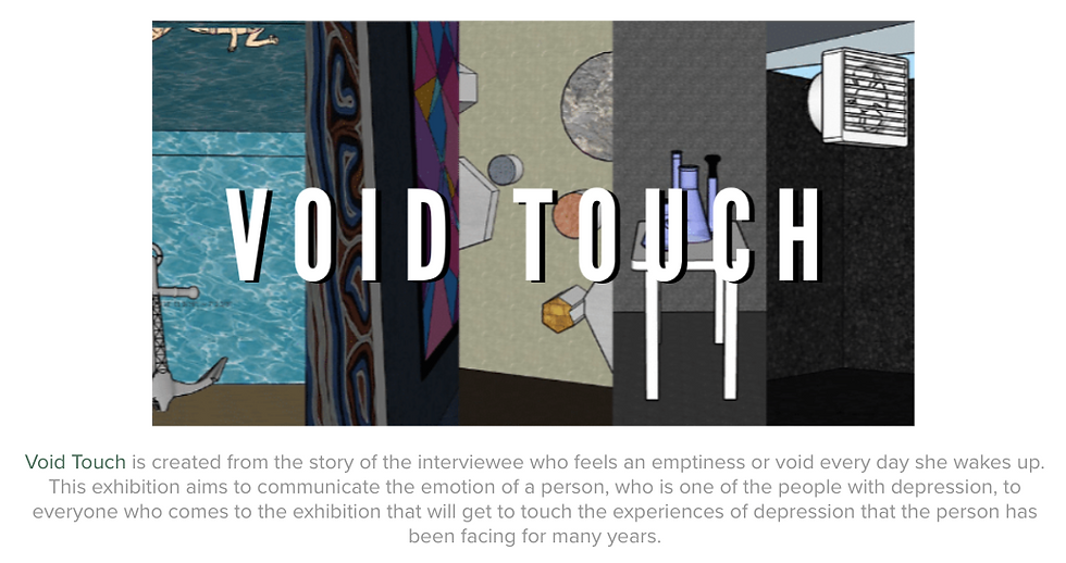 Therefore, we came up with the exhibition under the name “Void Touch” that presents the emotion of the individual who faces depression through senses including smell, see, touch, and taste.